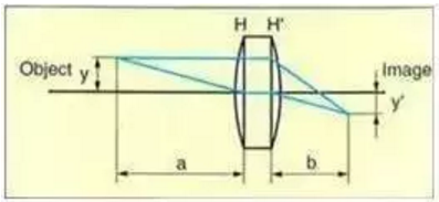 機(jī)器視覺(jué)行業(yè)里提到的鏡頭光學(xué)放大倍率通常是指垂軸放大倍率,即像和物的大小之比,計(jì)算方法如下: