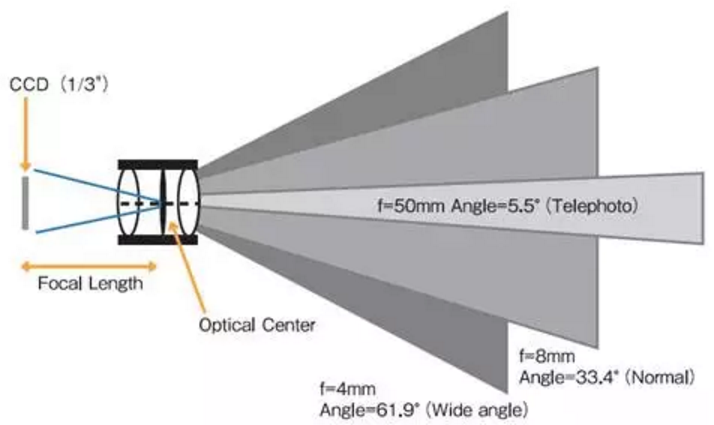 視場(chǎng)角與焦距的關(guān)系:一般情況下,視場(chǎng)角越大,焦距就越短。