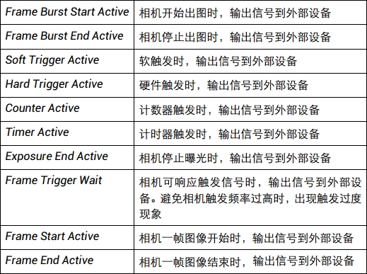觸發(fā)輸出信號設(shè)置:相機(jī)觸發(fā)輸出信號為開關(guān)信號,可用于控制報(bào)警燈、光源、PLC等外部設(shè)備。觸發(fā)輸出信號可以電平翻轉(zhuǎn)。