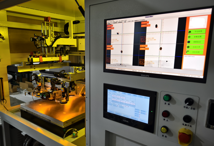 此方案適用領域為:PCB片狀電路板、柔性扁平電纜(FFC)、柔性觸摸屏、陶瓷片、玻璃蓋板、光學薄膜、等軟性材料、片狀材料的絲網(wǎng)印刷、填孔、通孔、檢測等相關工藝制造。